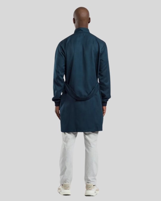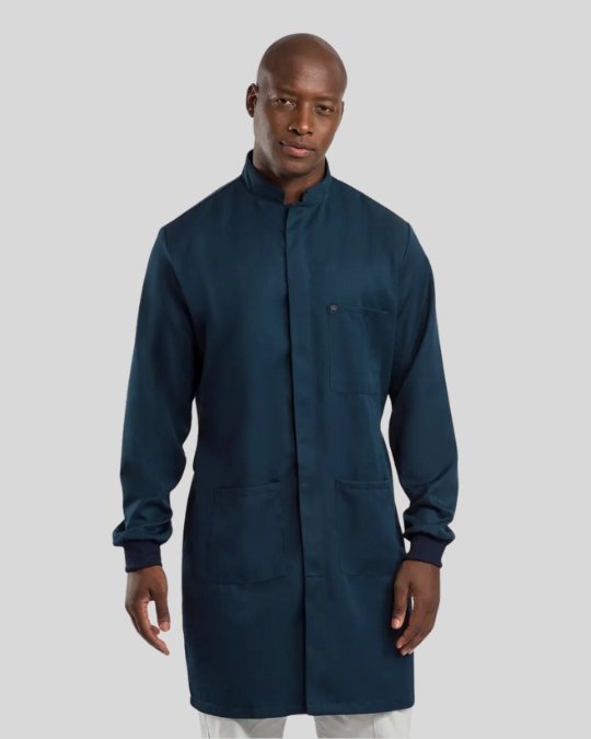 Con cuello mao y puños ajustados, este modelo ofrece la protección necesaria en entornos hospitalarios, además de un toque clásico y sofisticado. Su corte tradicional se complementa con botones y puños que añaden un ligero contraste, creando un estilo atemporal perfecto tanto para profesionales experimentados como para estudiantes.