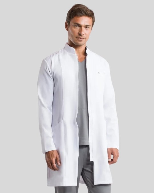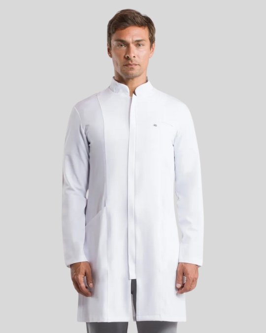 La Bata Masculina Elegance ofrece exactamente lo que su nombre promete: un estilo elegante, moderno y funcional. Con corte slim, cuello mao y solapa cubre-cremallera, brinda un ajuste impecable, ideal para profesionales que valoran la sofisticación en su día a día.