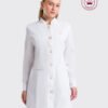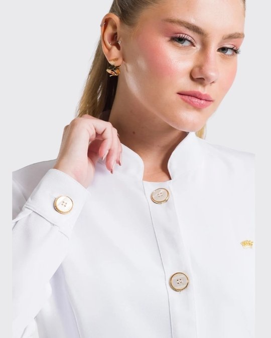 La Bata Femenina Helen es un clásico que combina sofisticación y funcionalidad. Confeccionada en tejido con 95% poliéster y 5% elastano, ofrece comodidad y un ajuste impecable. Cuenta con elegante cuello tipo mao, bolsillos frontales funcionales y cierre con botones exclusivos con detalle dorado y corona personalizada, aportando un toque de delicadeza y exclusividad.