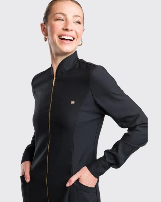 Ideal para profesionales de la salud, como médicas, enfermeras y dentistas, así como para áreas como fisioterapia, nutrición, estética y más, la Bata Juicy es la elección perfecta para quienes buscan combinar elegancia y practicidad. Con cuello tipo mao y detalles dorados, es una prenda versátil que destaca en cualquier entorno profesional.