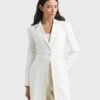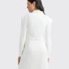 El modelo presenta un diseño clásico, con cierre frontal de botones personalizados, mangas ligeramente abullonadas en los hombros y etiquetas personalizadas que aportan un toque de sofisticación.